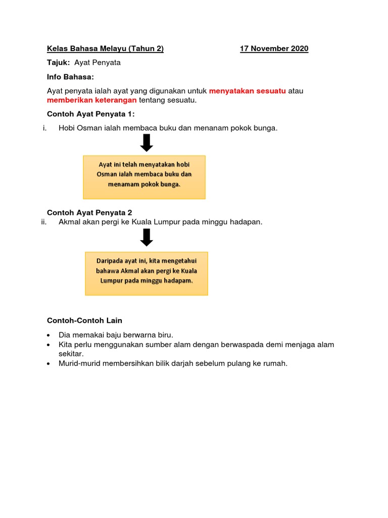 Ayat penyata didefinisikan sebagai ayat yang diucapkan dengan maksud membuat satu penyataan Tatabahasa Dewan Edisi Ketiga441. Bina Ayat Other contents. Format baharu pentaksiran bahasa melayu sijil pelajaran malaysia.
